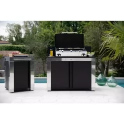 - Plaque en fonte émaillée, rebords anti-projection, goulotte d’évacuation, anti-adhérente