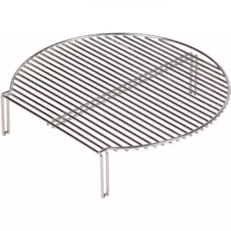 Grille en inox permettant de profiter de 60% de surface de cuisson supplémentaire dans votre kamado Le Chef Monolith. Positionnée sur ses pieds crantés, elle sera très stable.