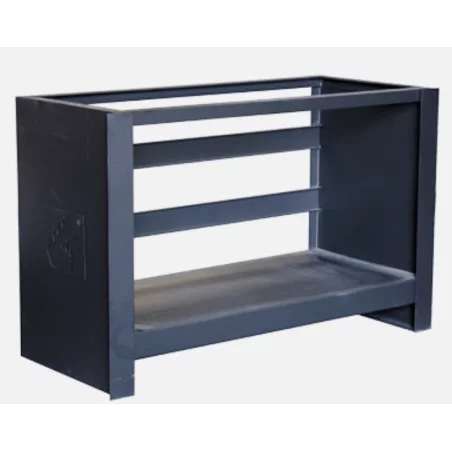 Il s’agit d’une table d’appoint multi-fonctions. Elle permet de stocker du bois (mais pas que), elle propose aussi un espace de travail supplémentaire.